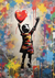 Dit schilderij toont een kind dat naar een rode, hartvormige ballon reikt.