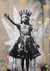 Dit schilderij toont straatkunst met een jong meisje met een kroon en vleugels,