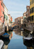 Dit schilderij toont een serene gracht in Venetië, geflankeerd door kleurrijke gebouwen en kleine overbrugde paden.