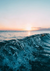 Een schilderij van een lage golf, met de zon op de achtergrond.