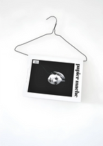 Zwart-wit schilderij met een zwarte kledinghanger waaraan een tijdschrift hangt met de tekst "paper mache".