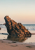 Een schilderij van een uitstekende rots op het prachtige strand.