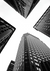 Zwart-wit schilderij onderaan 4 grote gebouwen.