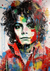 Dit schilderij toont een vrolijk portret van een man met kort krullend haar en serieuze uitdrukking. Het is geschilderd in een vrolijke stijl met rode, blauwe, groene en gele tinten.
