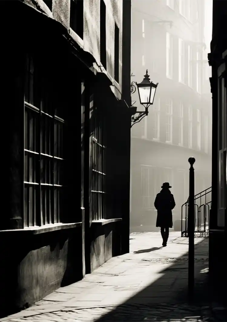 Waarom je kiest voor Walking the dark streets schilderij op Tuinposter
